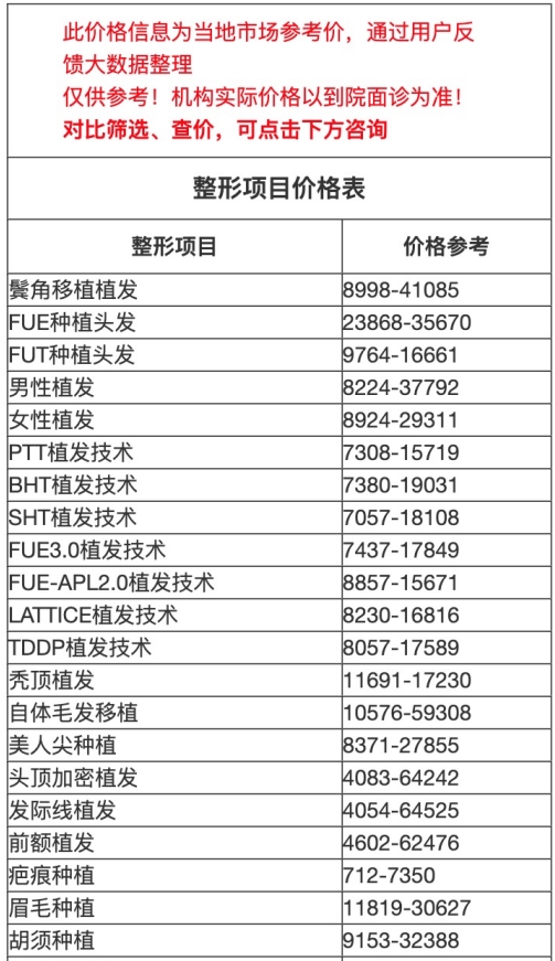 二、周口市中心醫(yī)院整形外科植發(fā)價目表