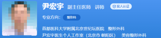 醫(yī)生介紹:尹宏宇是副主任醫(yī)師,講師,擁有臨床和口腔雙重行醫(yī)資格,是北京醫(yī)學會整形外科學分會委員會委員,北京醫(yī)學會美學與美容分會委員會委員等。在整形和口腔行業(yè)工作了很多年,臨床經(jīng)驗十分的豐富。
